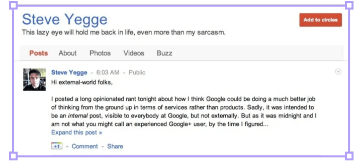 The best part - Yegge accidentally made the internal Google memo public on Google+, garnering massive media attention.