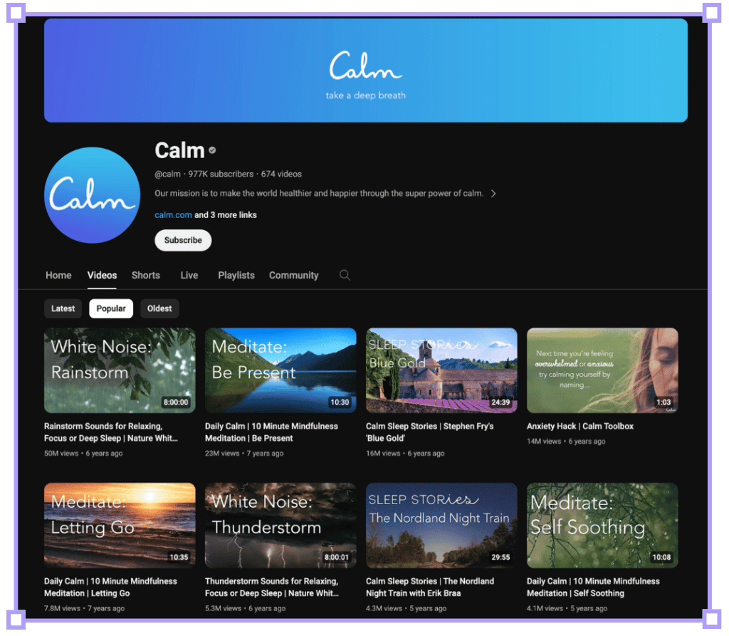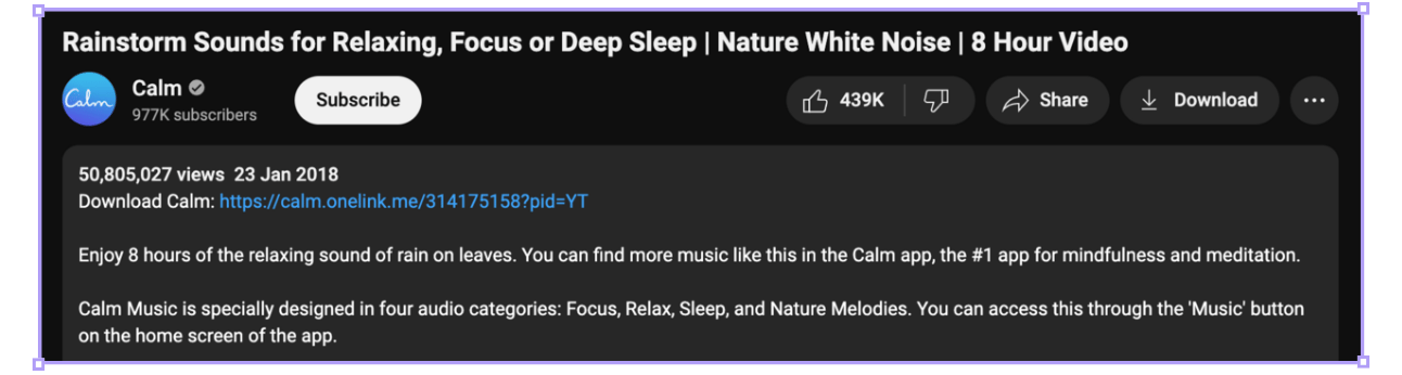 Calm’s top videos are a deliberate exercise in ranking for popular search terms among their target user base.