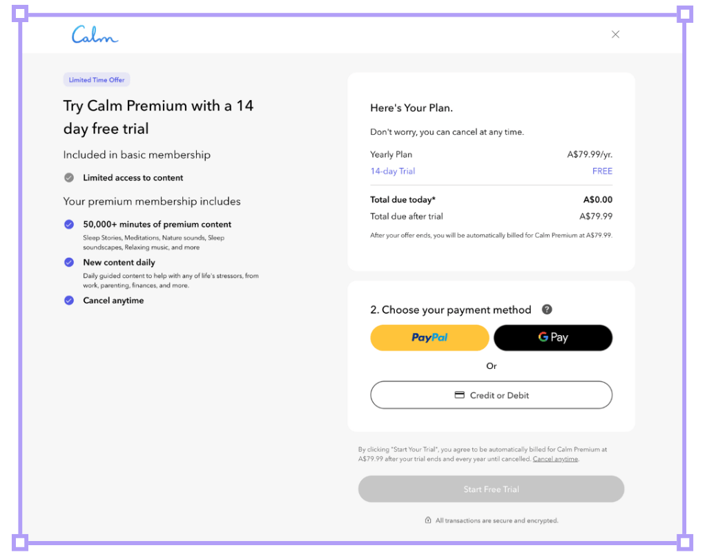 To maximise conversion of video search traffic into app users, Calm designed its funnel to be as simple and friendly as possible.