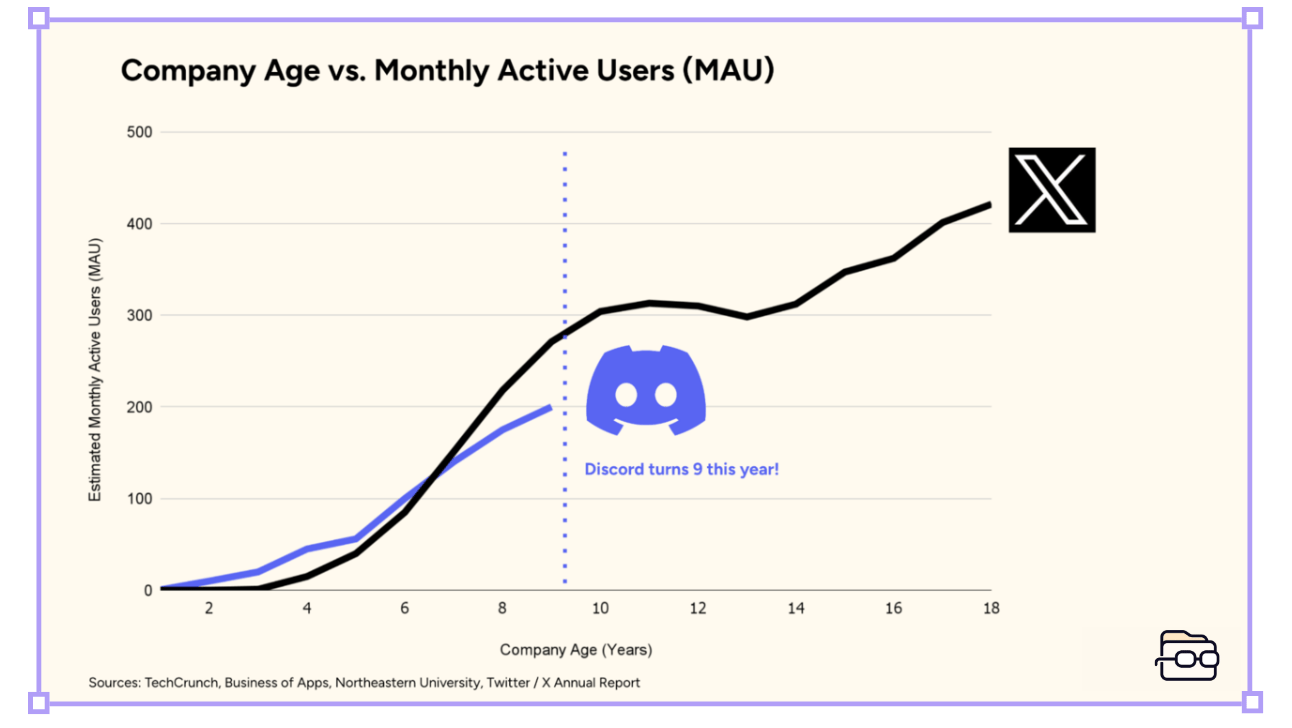 To put their scale into context, here’s how Discord stacks against another large community platform before their 9th birthday: