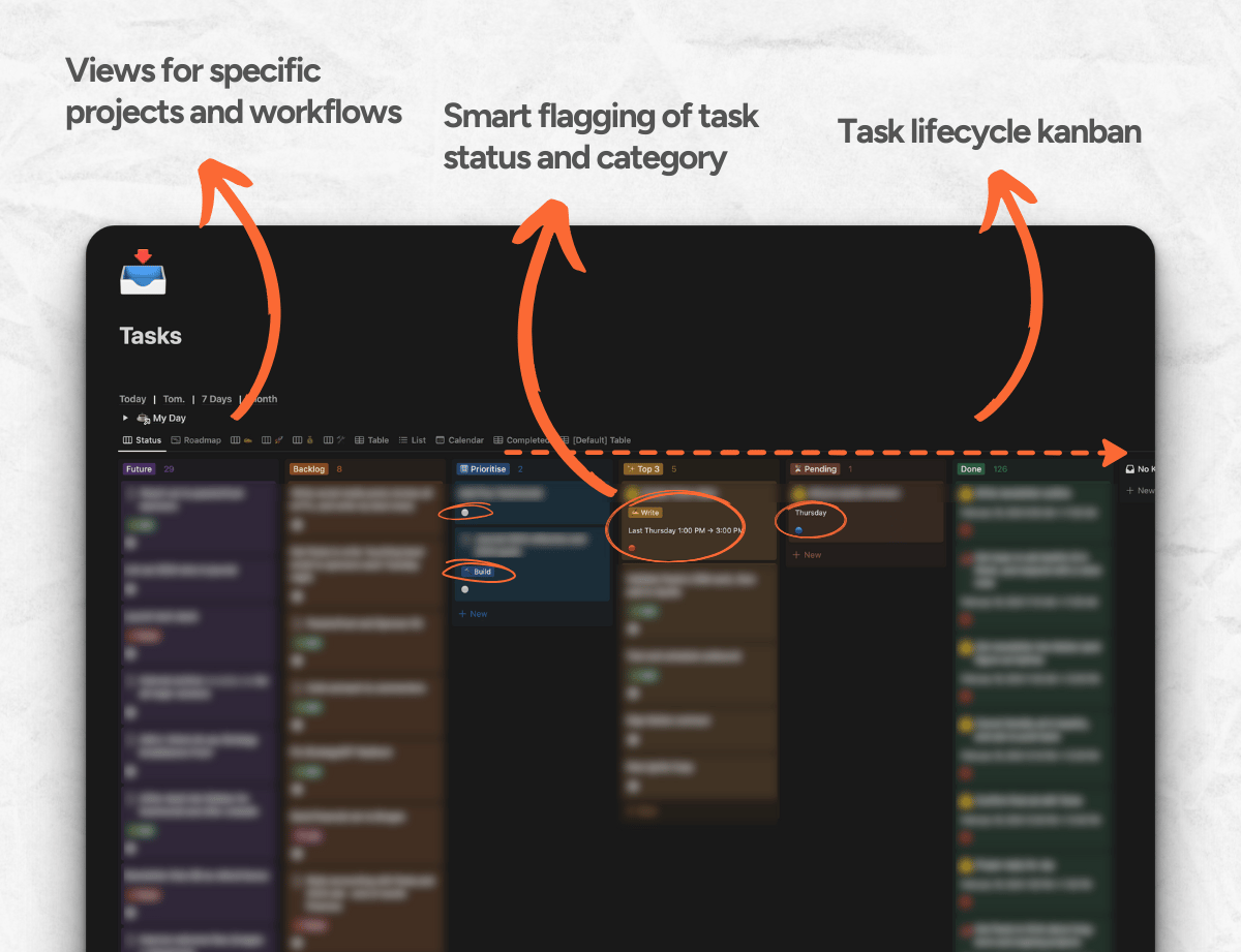 Tasks and projects system for prioritising and managing activites that power my business / life.