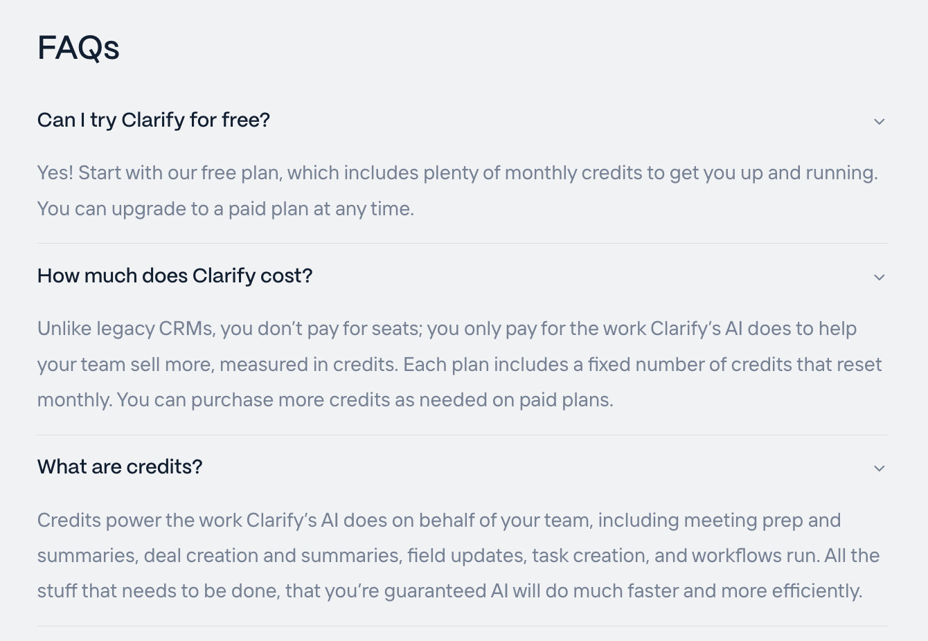 Credit-based usage is the stepping stone toward a model where you'd pay per deal influenced or per meeting booked. Likely fairest version offered today while the market figures out how to price AI-driven outcomes.