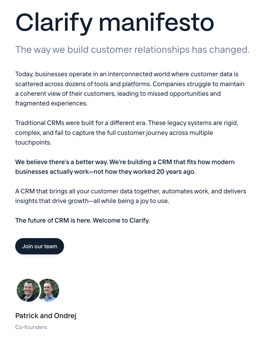 "Legacy CRMs are fundamentally broken. They're designed to be served, not to serve. These systems demand an army of humans just to produce basic outcomes. It's backwards."