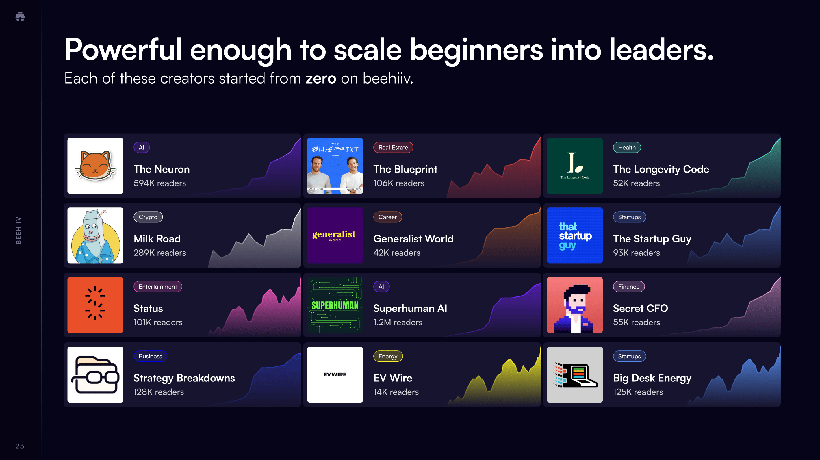 Brand, experience, design, novelty, voice. A good idea needs a bit of swagger to really come to life. The fact that beehiiv offers the most flexibility on all these fronts is a cornerstone value prop for me.