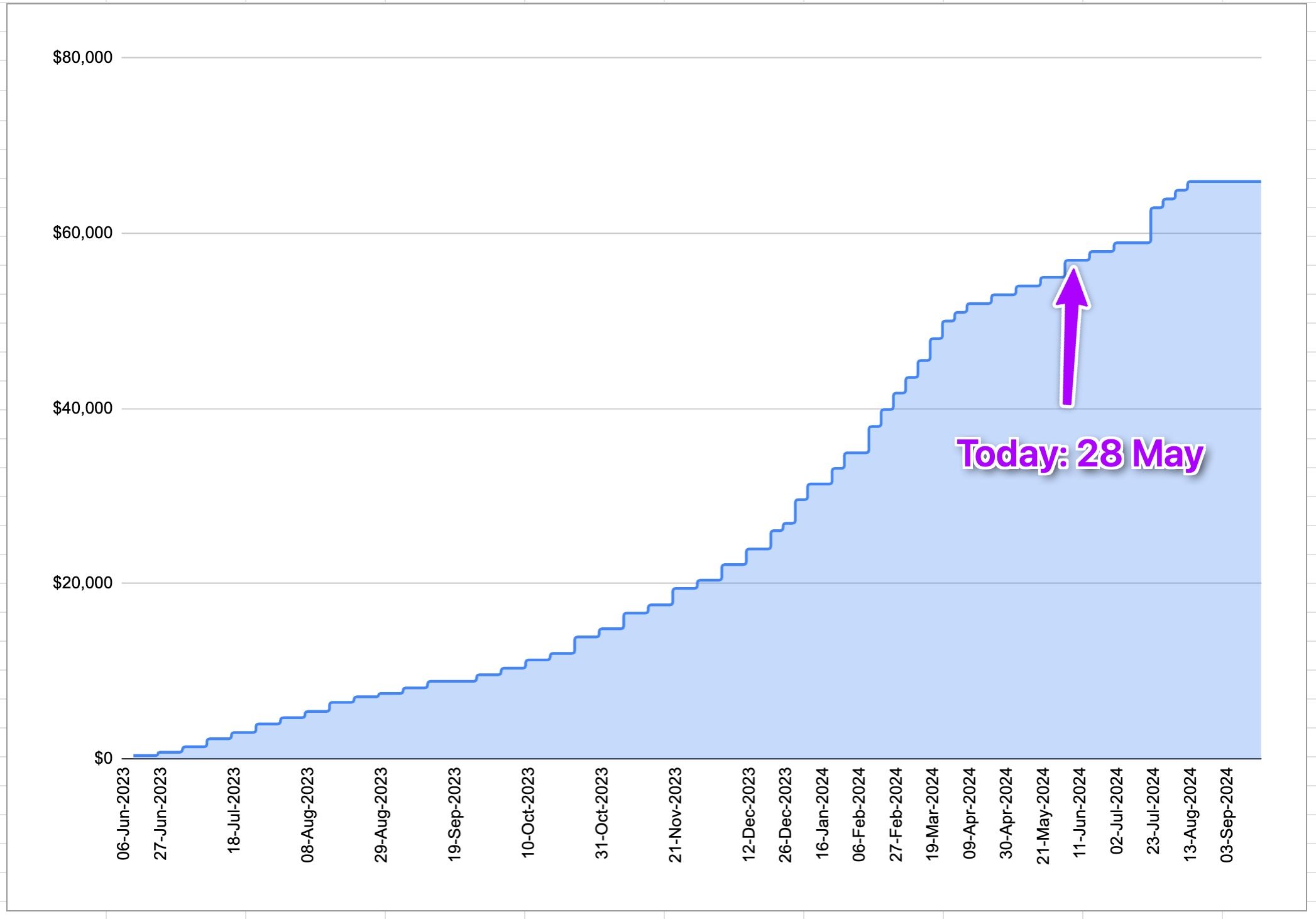 First ~year in the bank - $65k cash collected, $58k revenue accrued. Love a negative cash conversion cycle. iykyk.