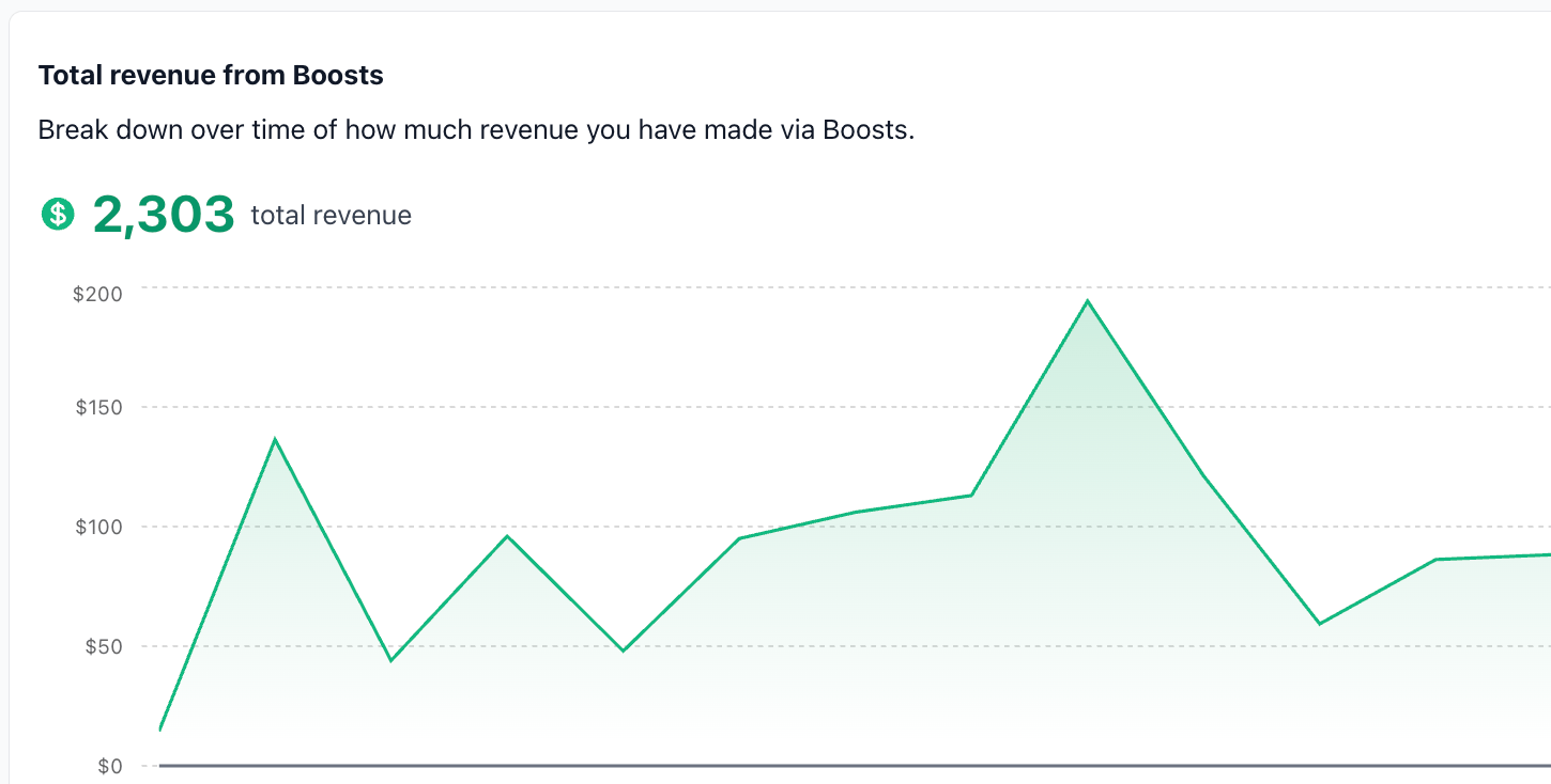 I also earned $2,303 from the other side of Boosts - recommending other newsletters to my audience. Not a core revenue stream, but not bad for something that I tested for a few months in the early days when I was still figuring out my monetisation strategy. Especially considering it only took about 5 minutes to set up.