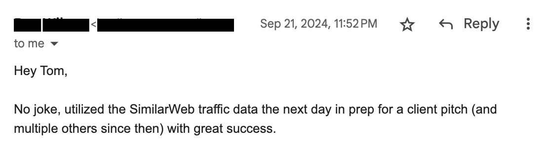 → Traffic spying 101. This is absolutely magical data for countless reasons - anecdotally I get a tremendous amount of value from it for the use case of strategic market scans and ecosystem research: getting a better sense of scale, reach, market share, and even top-line-napkin-math-revenue for companies I’m analysing and in some cases - partnering with.